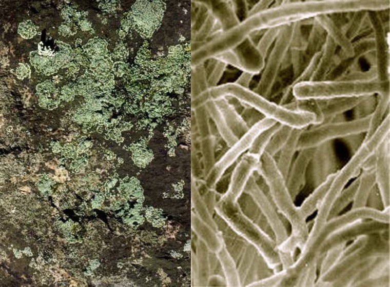 Nhưng khi có một vết nứt, dù rất nhỏ trên bề mặt bê tông làm không khí và hơi nước lọt vào, lập tức các bào tử nấm sẽ thức dậy và bắt đầu nẩy mầm, phát triển và sản xuất ra carbonat canci (calcium carbonate - CaCO3) để "vá" vết nứt.